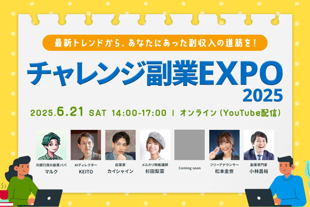 2025年6月21日、副業をテーマにしたオンラインイベント「チャレンジ副業EXPO 2025」に登壇しました。AIを味方につけることで副業の可能性がどう広がるかについて、実体験を交えながら解説しました。